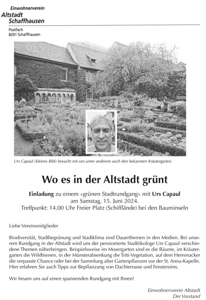 Einladung zu einem «grünen Stadtrundgang» mit Urs Capaul